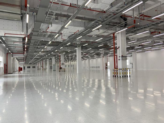 項目主要工程量是拆改門窗37套,新建門窗114套。拆除墻體228米,新增砌塊墻體239米,鋼結構45噸,樓面開洞75m2,屋面新增基礎長145米,環氧自流平地面9153m2,粉刷涂料14938m2;全新風空調系統為9個、防排煙系統6個、排風系統8個、除塵系統2個、風機盤管35臺、分體式空調3臺、風管面積9800 m2、照明燈具1500套,配電箱65套,熱鍍鋅橋架和線槽8600米,電纜和電線66000米,防雷接地3100米,管道7850米,設備58臺(套)。